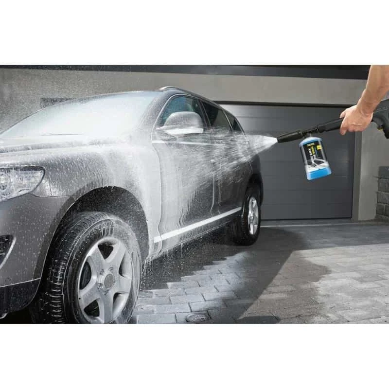 Le shampoing possède des tensioactifs biodégradables conformément aux normes OECD et le détergent est prêt à l’emploi (RTU). Doté d’un système Plug ’n’ Clean, le shampoing peut plus rapidement et plus facilement appliquer des détergents à l’aide d’un nettoyeur haute pression Kärcher.
