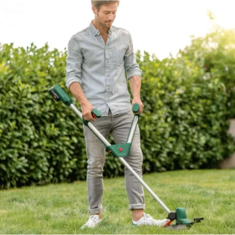 La tête polyvalente de l’outil est réglable et inclinable en dresse-bordures sans avoir besoin de se baisser. L’autonomie du taille bordure est suffisante, il est possible de couper les bordures de huit terrains de tennis avec qu’une seule charge de batterie.