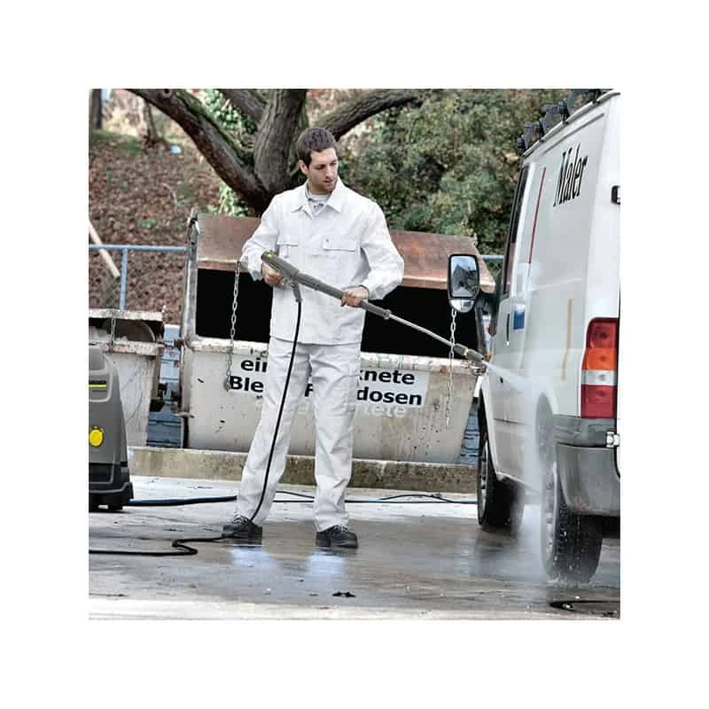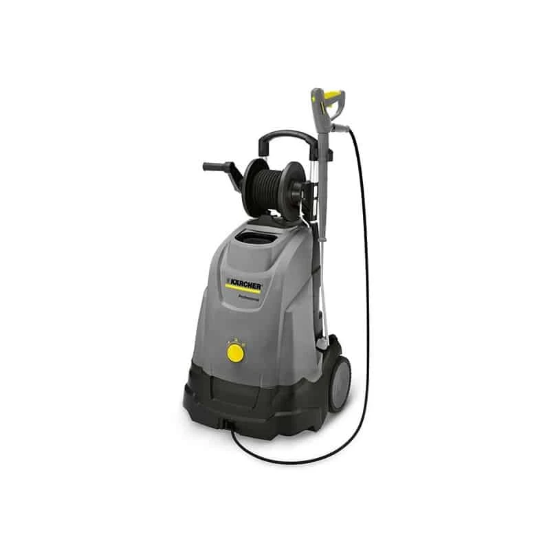 Doté d’un tambour-enrouleur, le nettoyeur haute pression eau chaude Karcher HDS 5/15 UX + est simple d’utilisation grâce à son bouton de commande unique (Off / Froid / Chaud).