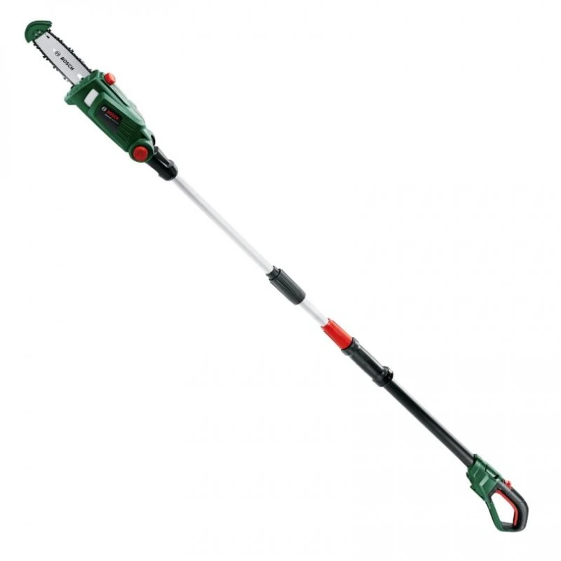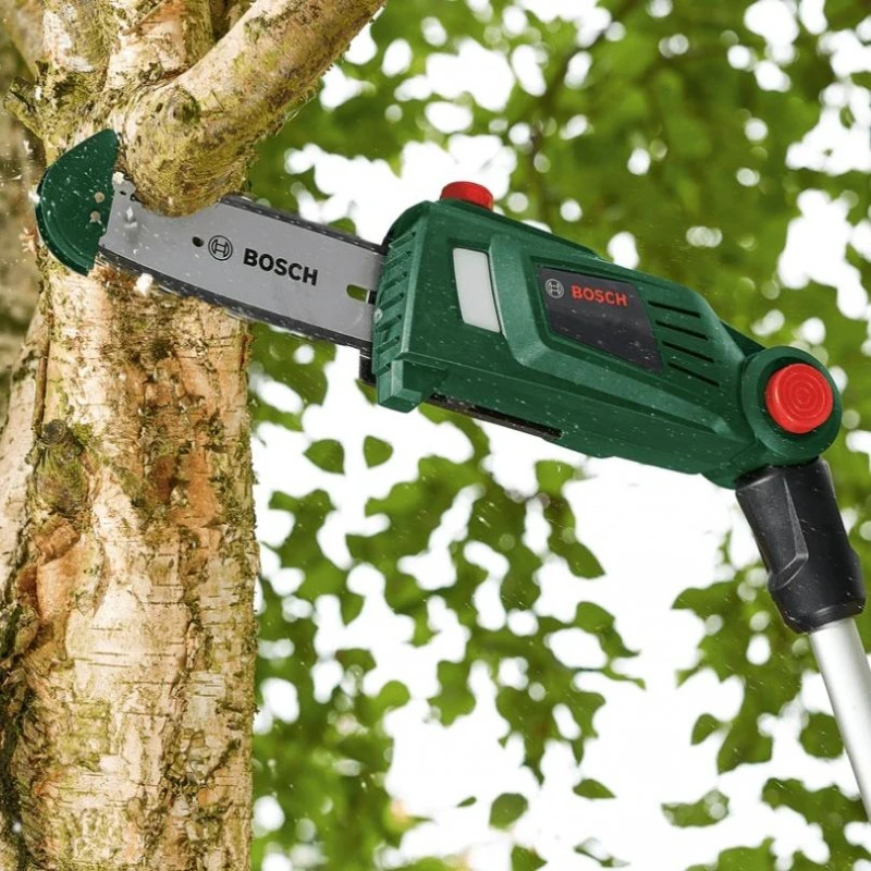 Légère et ergonomique, l’élagueuse sur perche Universal ChainPole 18 de Bosch permet de couper sans effort les branches difficiles à atteindre grâce à sa perche et sa tête pivotante à 120°. Sa longueur de guide est de 20cm, la vitesse de la chaine de 4 m/s et vous pouvez régler la hauteur entre 210 et 260 cm.
